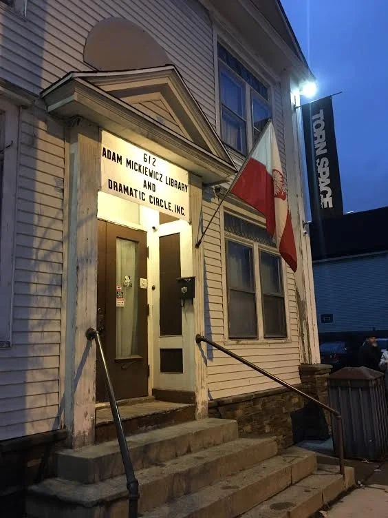 From their website: “Torn Space Theater is housed in the Adam Mickiewicz Library and Dramatic Circle on Fillmore Avenue in Buffalo. The Adam Mickiewicz Library and Dramatic Circle is a non-profit private club founded in 1895. It is the oldest Polish American organization in Western New York and is the oldest surviving Polish library in Buffalo. The library holds about 12,000 volumes with 400 hand-copied plays. The bar serves over 50 different imported beers with a large Polish selection. The “Circle” is also home to a large annual Dyngus Day party, as well as other cultural events.”